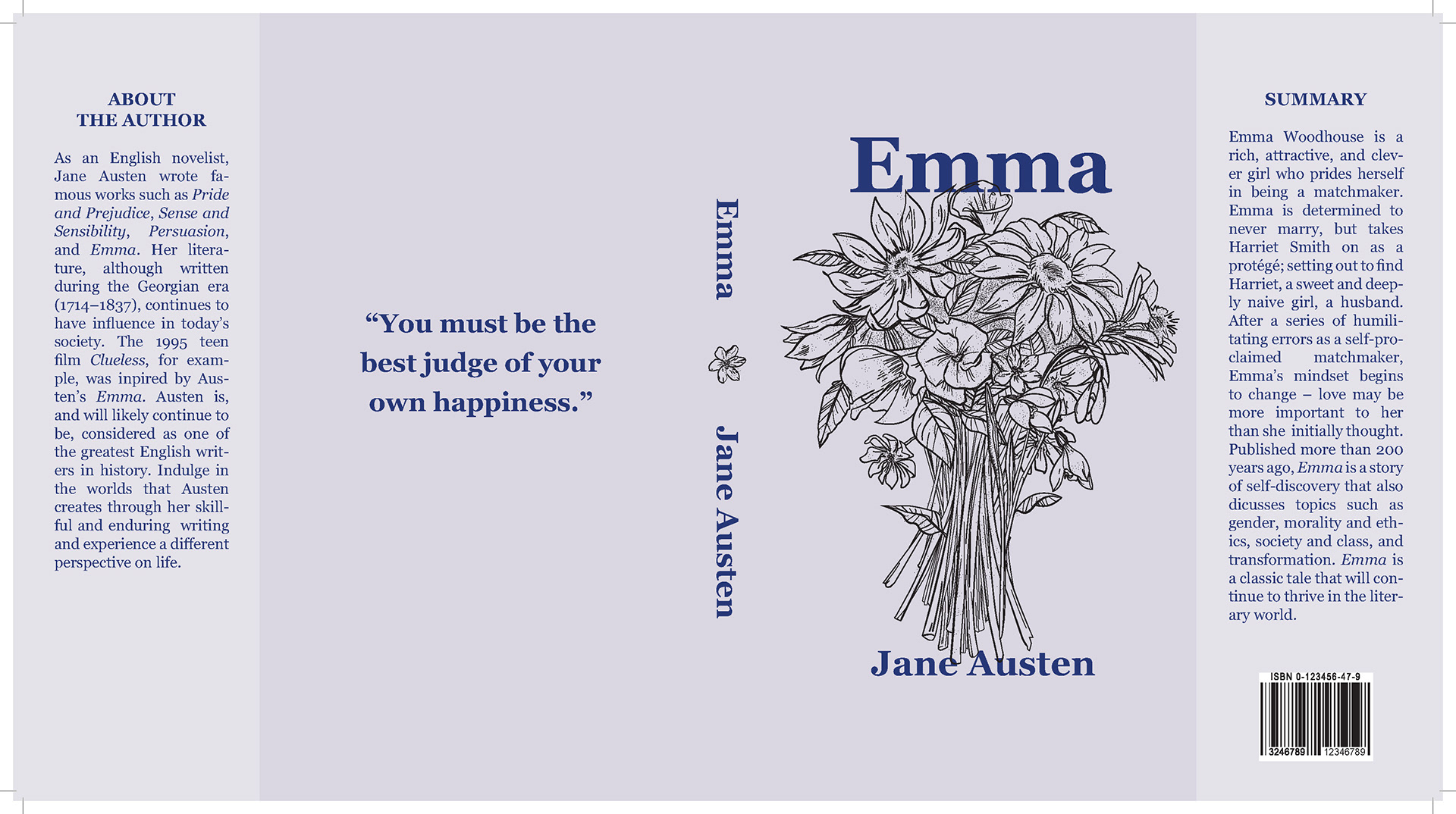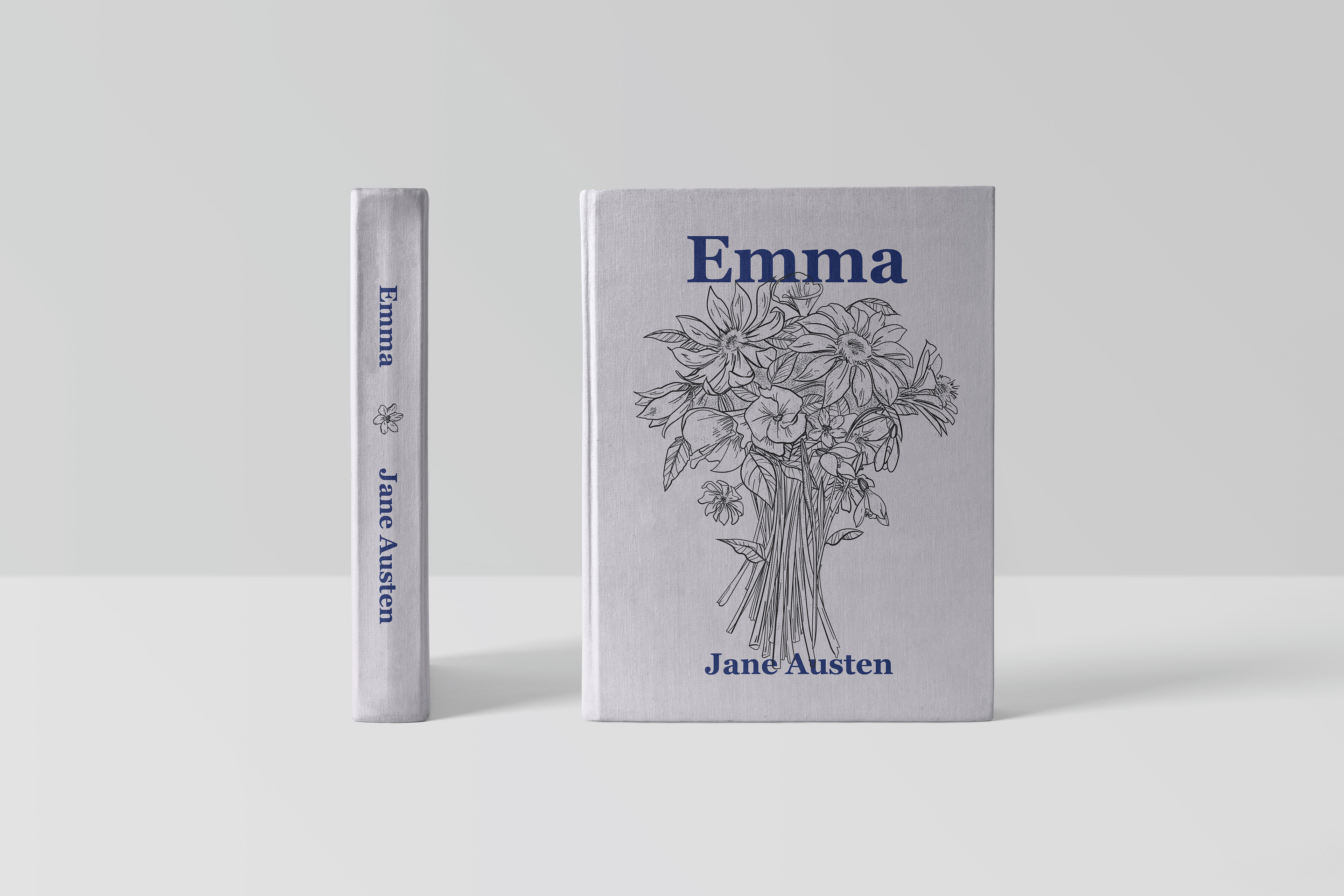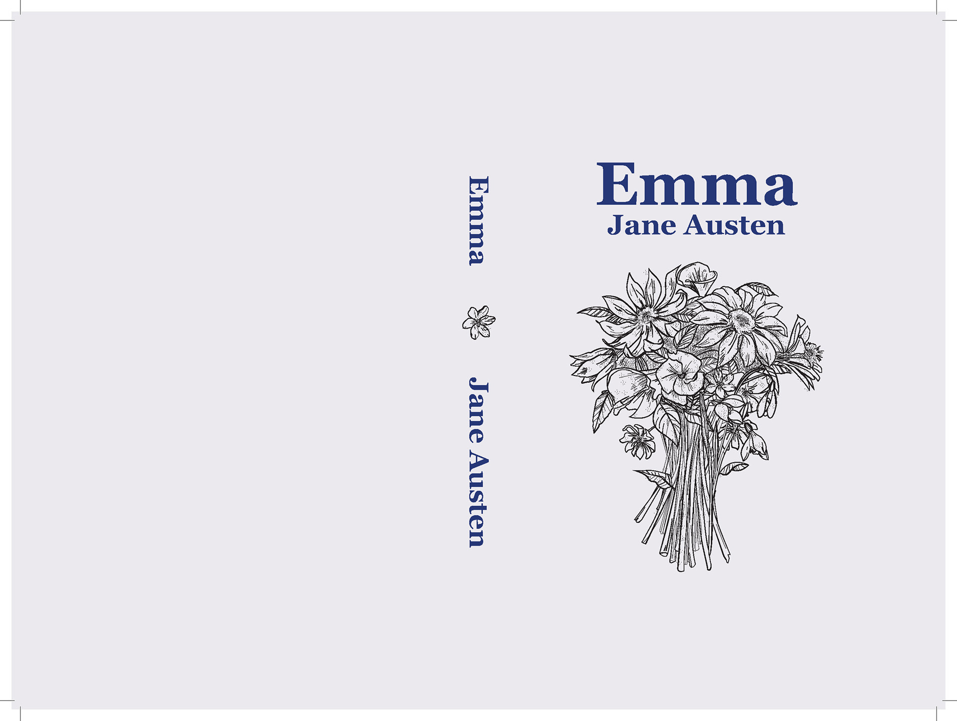 An illustrative book cover design and text layout composition for Jane Austen's Emma.